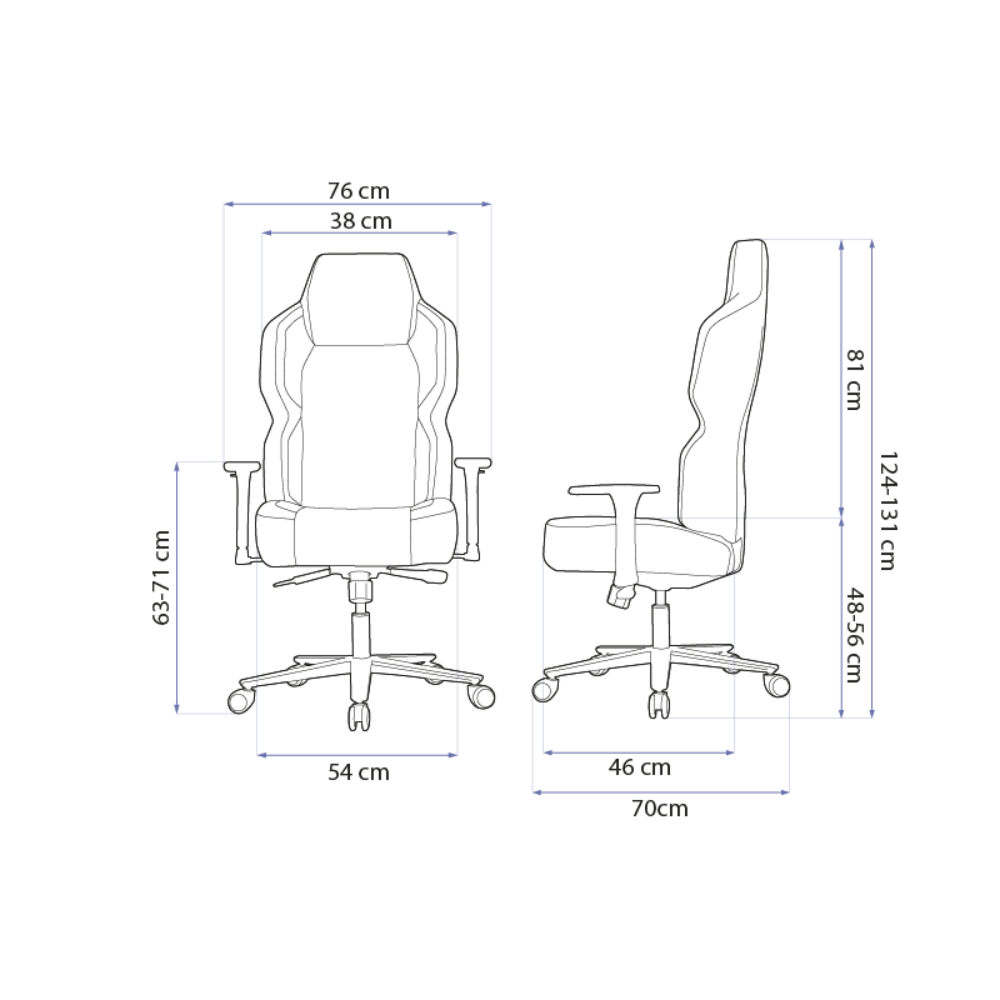 Inclinação até 135° (trava em qualquer posição); função balanço 12°