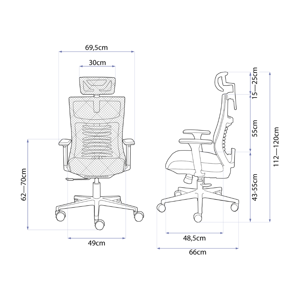 Altura (7 níveis de altura) e 4 ângulos de ajuste